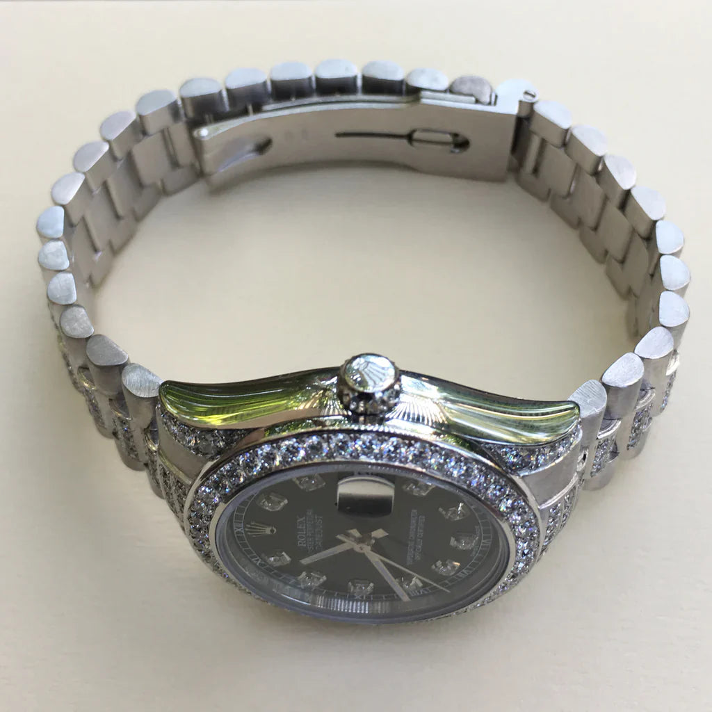 Strap/Bracelet: Custom Presidential Strap, set with 3.00 carats VS/F grade diamonds