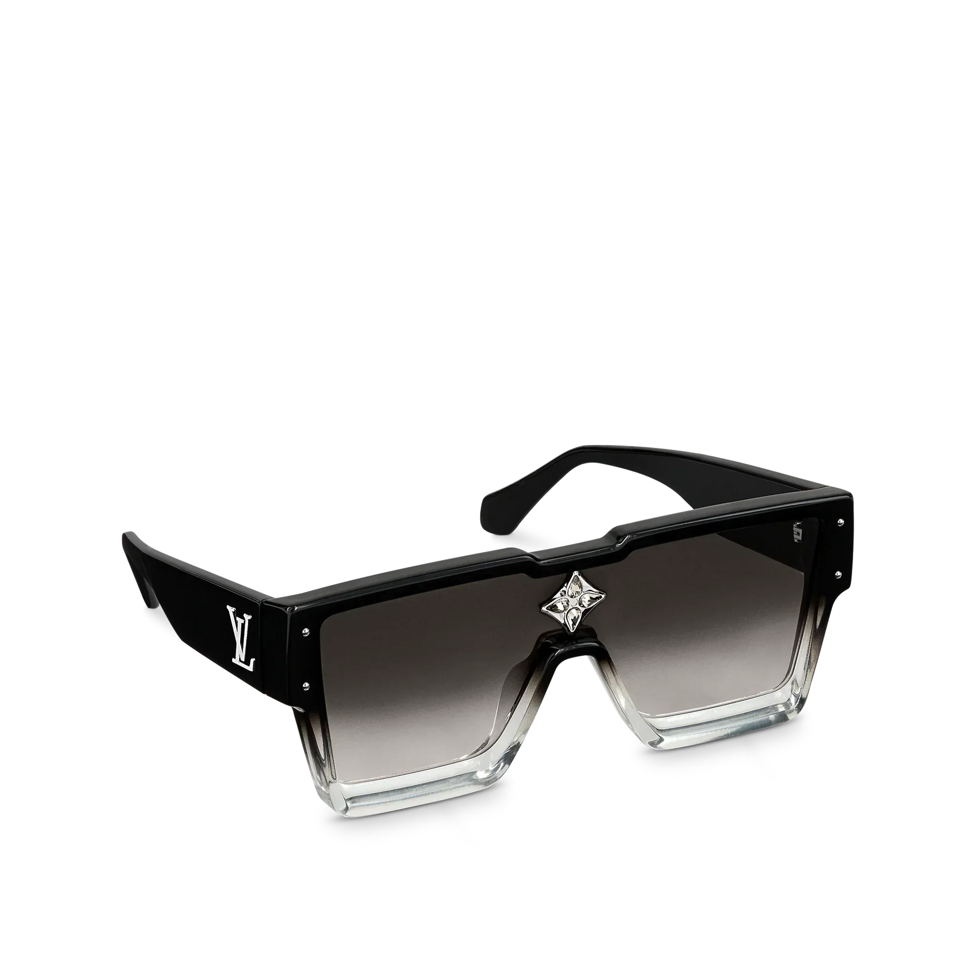 The Cyclone Sunglasses make a bold statement with their modern square shape and deep bevel. This modern design features lenses that are transparent at the bottom, matching the gradient colouring of the frame. A Monogram Flower composed of four crystals sits above the bridge of the glasses, adding a sparkling finish to this architectural piece.